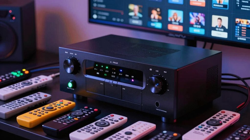 Connecting multiple audio sources to your AV receiver’s like orchestrating a symphony, where each instrument plays its part in harmony. You’ll need to identify the audio source connections available, like HDMI, optical, or RCA. Plug in your devices, ensuring each one’s connected securely. In your multi-device setup, use the receiver’s input selector to switch between sources seamlessly. With a few tweaks, you’ll create a rich audio landscape that elevates your entertainment experience.