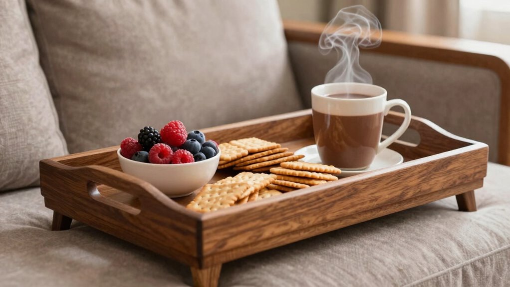 When it comes to snack trays, think of them as the sturdy lifeboats on your couch cruise. You wouldn’t set sail without one, right? Prioritizing functionality over style guarantees that your snack tray supports your munching adventures without sinking into chaos. Choose the right size, durable materials, and user-friendly designs to keep your space tidy and your snacks at arm’s reach. After all, a well-chosen snack tray can make every binge-watching session feel like smooth sailing.