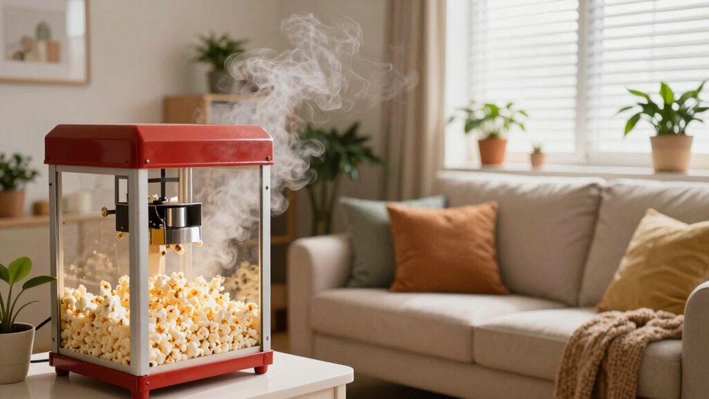 Think of your popcorn maker as a garden needing regular tending. You should clean it after every few uses—preferably weekly—to prevent lingering odors. Focus on popcorn maker maintenance by thoroughly washing parts and wiping down surfaces. Odor prevention tips include drying all components completely and storing it in a well-ventilated area. Consistent cleaning keeps your popcorn fresh and your space smelling inviting, like a well-tended garden in full bloom.