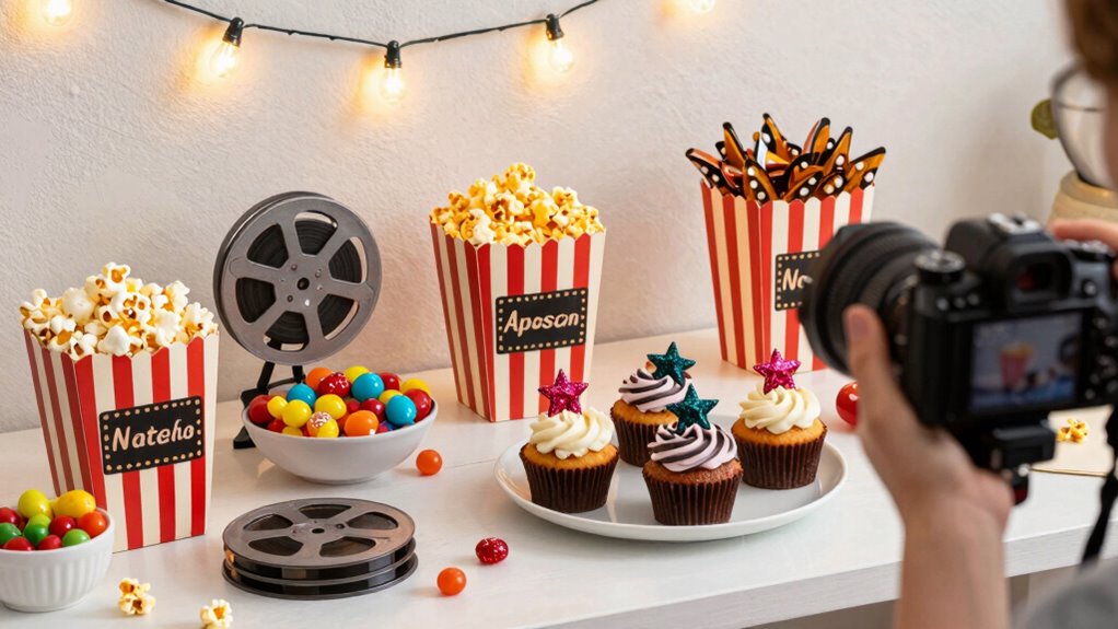 - Add decorative elements like stickers and fairy lights to the snack table, creating a cozy ambiance that mimics a real cinema environment.