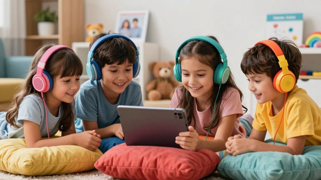 Finding the right headphones for your kids can make a significant difference in their listening experience and safety. Start by exploring different headphone types—over-ear, on-ear, and in-ear—to see which fits your child’s needs best. Over-ear headphones often provide better sound isolation, while on-ear models are more portable. Look for headphones that come with built-in volume controls, allowing you to set maximum limits to protect their hearing. Some models even feature volume-limiting technology to keep sound levels safe. Comfort is key too; make certain the headphones fit well and are lightweight. Additionally, understanding sound exposure principles can help you set appropriate listening durations and prevent hearing damage. Educating yourself on listening safety can further support your child’s hearing health. Remember that listening duration guidelines are essential to avoid excessive sound exposure. By considering these factors, you’ll not only enhance your child’s enjoyment but also guarantee their listening habits are safe for years to come.