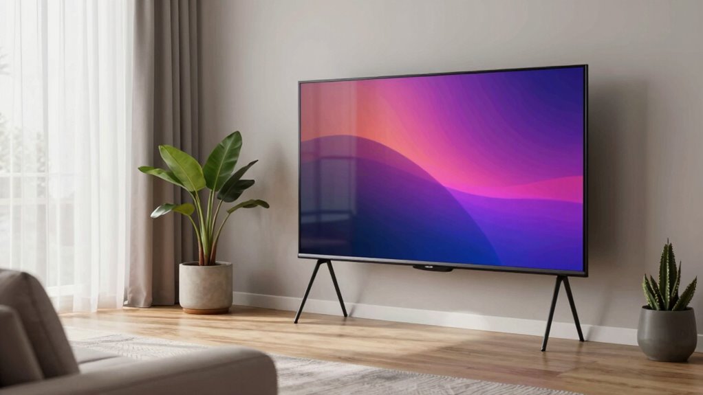 If reflections on your TV screen persist despite your best efforts, it may be time to call in the professionals. A thorough reflection assessment can identify underlying issues that you might not see. Professionals can evaluate your room’s layout, lighting, and TV positioning to determine the most effective solutions. They might recommend specialized anti-glare screens or suggest moving your TV to a different location for ideal viewing. Additionally, if you’re considering a new TV, professional installation guarantees it’s set up correctly to minimize reflections from the get-go. Don’t let reflection issues ruin your viewing experience; reaching out to experts can save you time and frustration while providing you with the best possible setup.