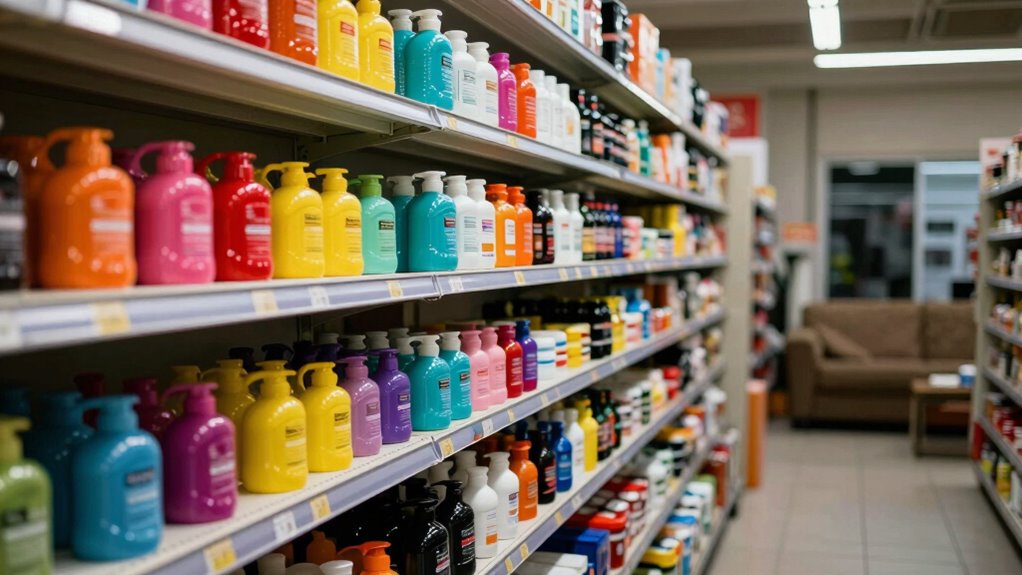 When you step into a retail store, the vibrant colors and striking displays immediately draw you in, creating an atmosphere that’s hard to resist. The retail environment is meticulously designed to enhance your shopping experience, and that’s where color saturation plays an essential role. Bright hues and dynamic contrasts grab your attention, making products appear more appealing. You can’t help but feel energized and excited as you navigate through aisles filled with visually stimulating arrangements. This intentional use of color elevates the overall ambiance, encouraging you to explore further. In contrast, such vividness often feels overwhelming at home, where softer tones might provide a more relaxed atmosphere. The allure of the retail experience thrives on this vibrant energy, engaging your senses. Additionally, color psychology explains how different hues can evoke specific emotional responses, which is carefully manipulated in store design to influence purchasing behavior. Moreover, advancements in display technology have made it possible for stores to optimize color vibrancy to maximize shopper engagement. Recent innovations in visual display systems also enable brands to tailor their color schemes dynamically, further enhancing the sensory impact. Furthermore, these display systems often incorporate color calibration techniques to ensure consistency and vividness across various lighting conditions. Additionally, innovations in smart display technology allow for real-time adjustments to color settings based on ambient lighting, further improving visual impact.
