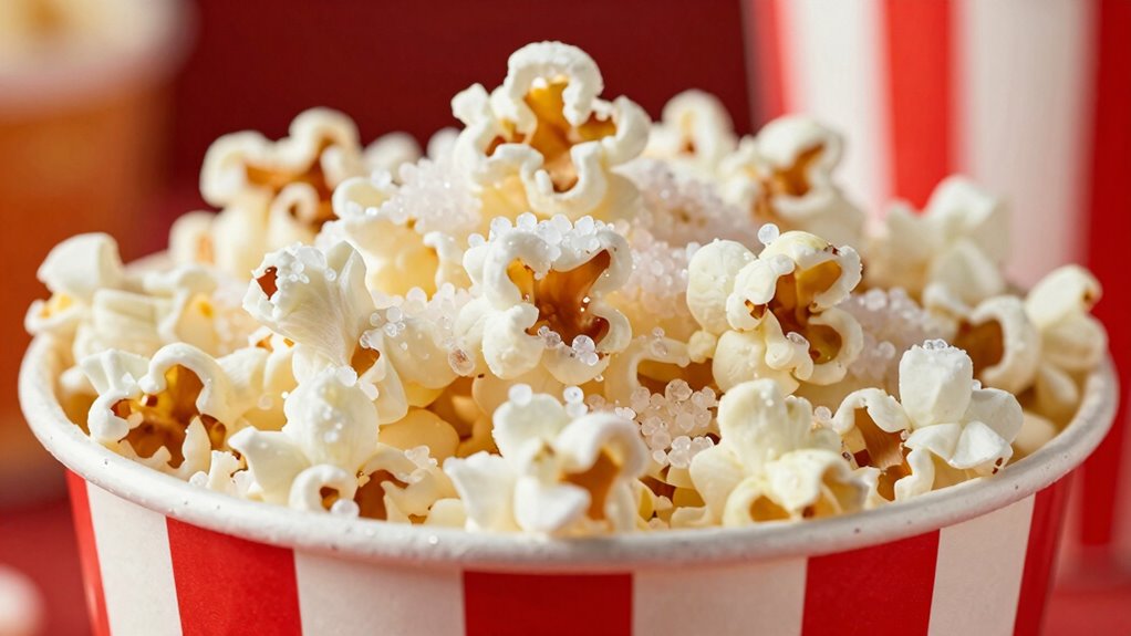 The type of salt used plays a significant role in achieving that perfectly seasoned popcorn. Movie theaters typically opt for fine salt granule size because it dissolves quickly and evenly coats each kernel. This ensures consistent flavor in every bite. Some theaters also incorporate specialized seasoning blends that enhance the salty taste without overpowering the popcorn’s natural flavor. Using coarse salt can result in uneven distribution, with some bites overly salty while others lack seasoning. Fine salt and carefully formulated seasoning blends work together to create a uniform layer of salt that sticks well to the popcorn. This precise choice of salt type ensures the seasoning adheres properly, giving you that perfect salty crunch every time. Additionally, precise seasoning selection plays a crucial role in achieving the ideal flavor profile for movie theater popcorn. Understanding seasoning techniques can help theaters optimize flavor and customer satisfaction. Moreover, selecting the right salt type can also improve the overall texture and appeal of the popcorn, making each serving more enjoyable. Proper salt application techniques further ensure that every handful delivers the same satisfying taste. For example, employing application methods that evenly distribute salt can significantly enhance the popcorn experience.