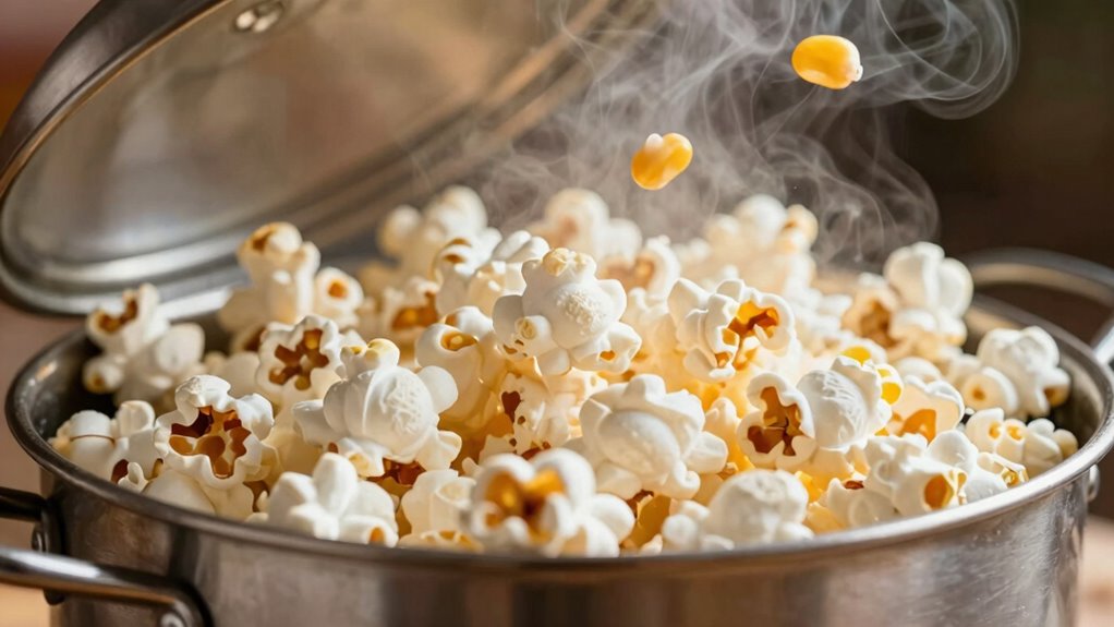 So, the next time you pop popcorn, try leaving the lid slightly ajar. You’ll let the steam escape, preventing soggy kernels and speeding up the popping process. It’s not just a theory; it’s science in action! By managing steam pressure, you’ll get fluffier, tastier popcorn in less time. Plus, you’ll avoid that dreaded burnt smell. Give it a shot—your movie nights will never be the same! Enjoy your perfectly popped popcorn!