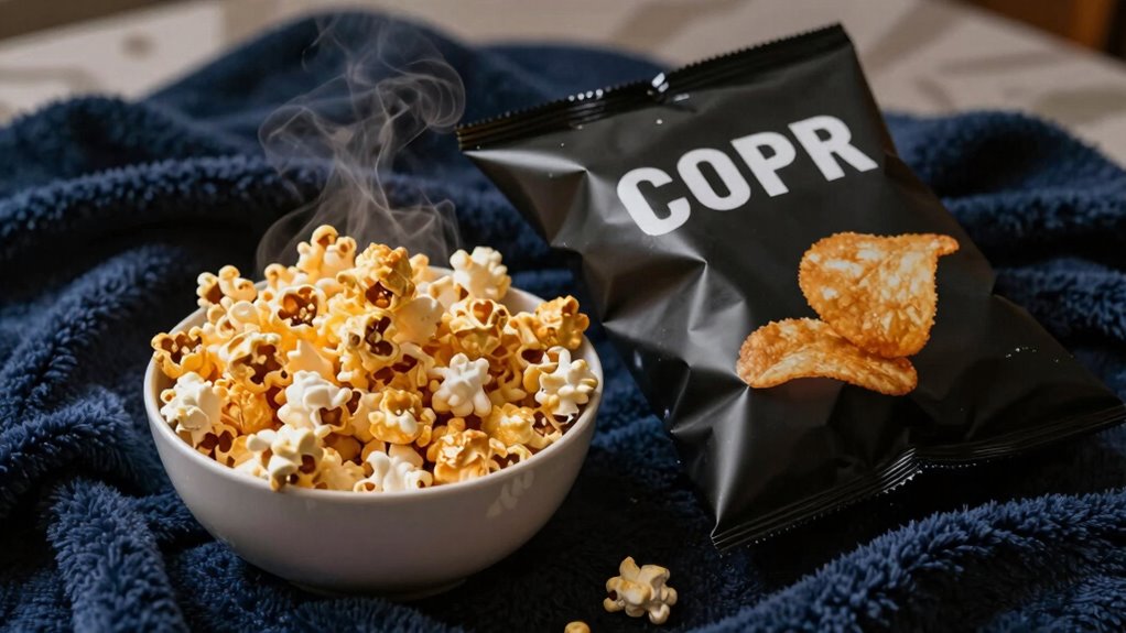 Pre-crisp your snacks before the movie, like setting a solid foundation for a house. Pre-crisping techniques, such as baking or toasting, lock in snack freshness preservation, ensuring your treats stay crispy longer. Doing this beforehand prevents sogginess, meaning you can enjoy crunch without interruptions. During the movie, you won’t need to re-crisp, so you stay immersed in the film while your snacks stay fresh and crispy from the start.