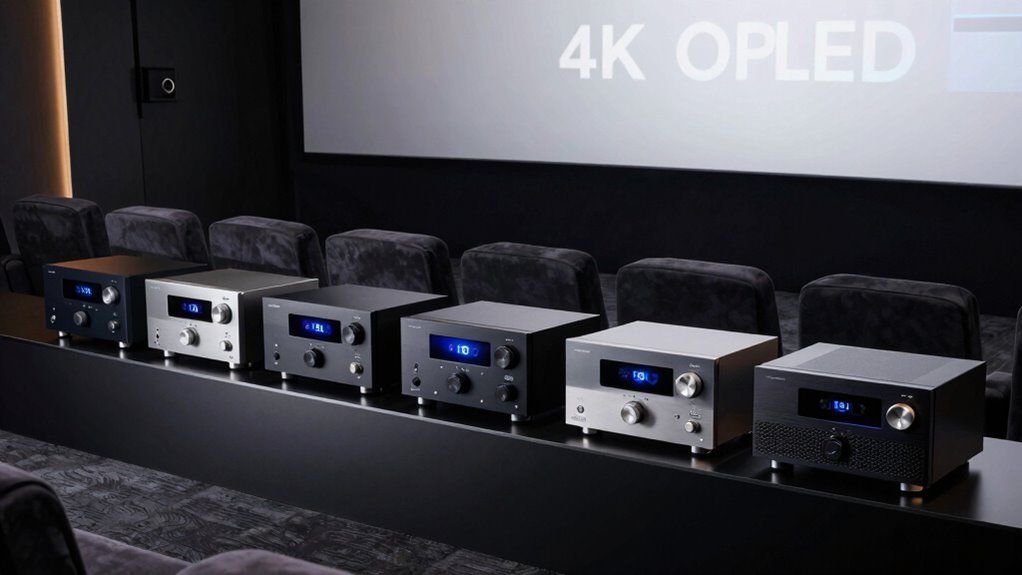 If you’re looking to elevate your home theater, I recommend checking out the top 7 nine-point-two AV receivers for 2026. They feature immersive sound formats like Dolby Atmos and DTS:X, plus advanced room calibration to perfect your sound. With HDMI 2.1, 8K support, and smart home integration, these receivers offer future-proof capabilities. Want to discover which models suit your space best? Keep exploring for all the details.