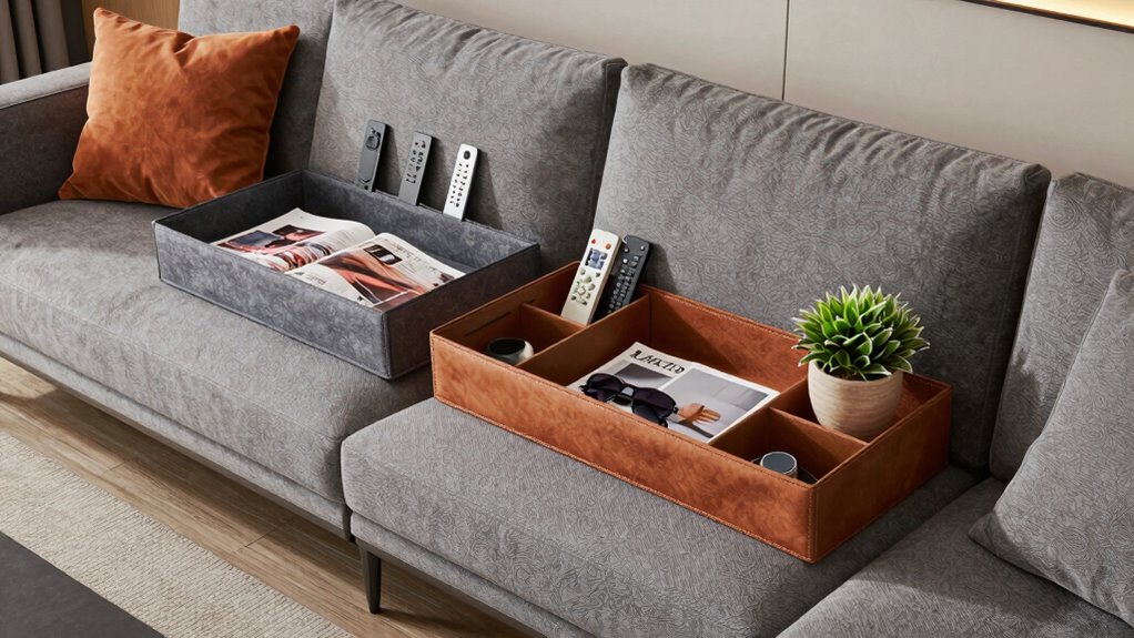 If you’re looking for the 15 best couch armrest organizers for 2026, I’ve got you covered. I’ve reviewed options that suit all styles and needs—from sleek fabric trays to multi-pocket designs with drink holders. These organizers are made from durable, easy-to-clean materials, with features like non-slip backing and adjustable fits to stay securely in place. Keep watching to find out which one will work best for your space and preferences.