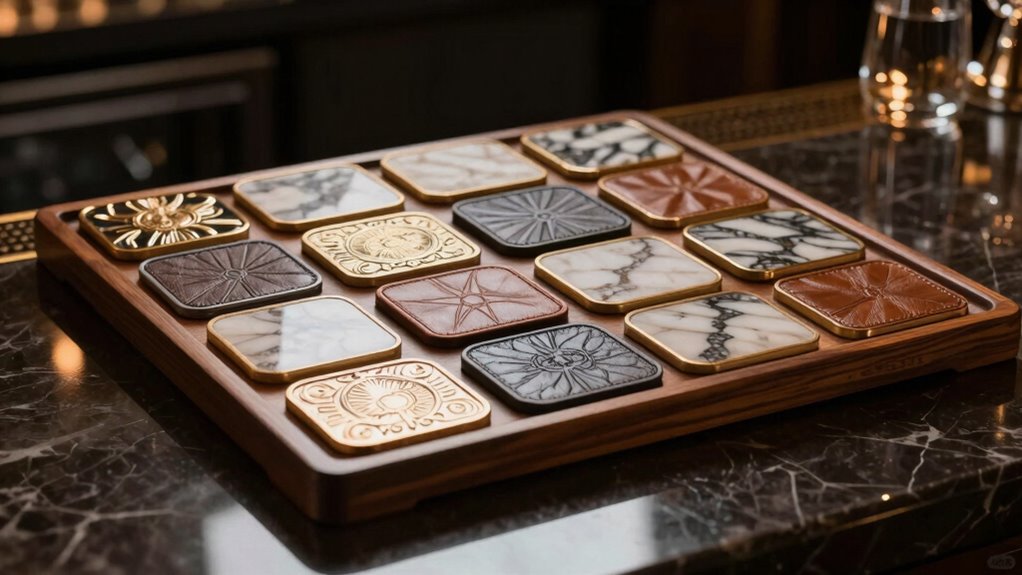 Think of premium coasters as the jewelry of your coffee table—they elevate your space effortlessly. I’ve found that their elegant designs and luxurious materials add sophistication and a personal touch to my home decor. Whether it’s a marble, leather, or metal coaster, each piece reflects my style while protecting surfaces. They serve as functional art, turning an everyday necessity into a statement piece that complements my decor beautifully.