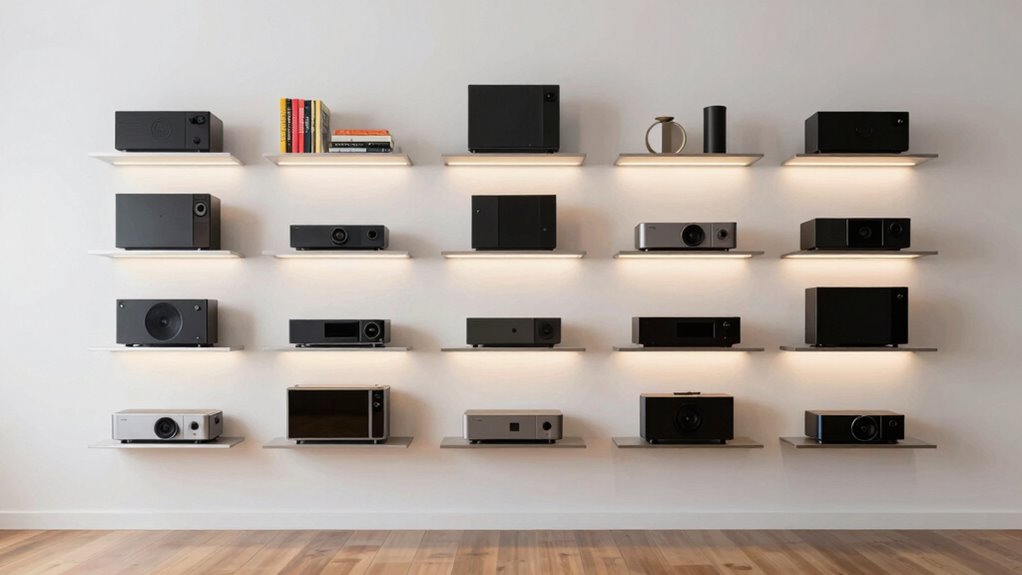 When installing floating shelves in your media room, the complexity of the process can vary based on several factors. First, check if the mounting system needs specialized tools or if basic hardware will do—this impacts setup time and effort. Next, see if the shelves come with clear instructions; confusing directions might require professional help. The number of mounting points and support brackets also matters, as more points mean more precise alignment. Wall type is another key factor; drywall, concrete, or other surfaces each demand different installation methods. Finally, consider if the shelves are adjustable or modular, which can add extra steps or tools for customization. By evaluating these aspects, you’ll better understand the installation effort involved.