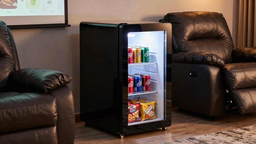 Choosing the perfect mini fridge for your movie room can feel overwhelming, but remember—this is your sanctuary for blockbuster marathons! Whether you want a sleek glass door or a compact cooler, the right fridge will elevate your viewing experience to legendary status. Invest wisely, and you’ll have a beverage oasis that’s more epic than a Hollywood blockbuster. Your perfect movie nights deserve nothing less than a mini fridge that’s truly a game-changer!