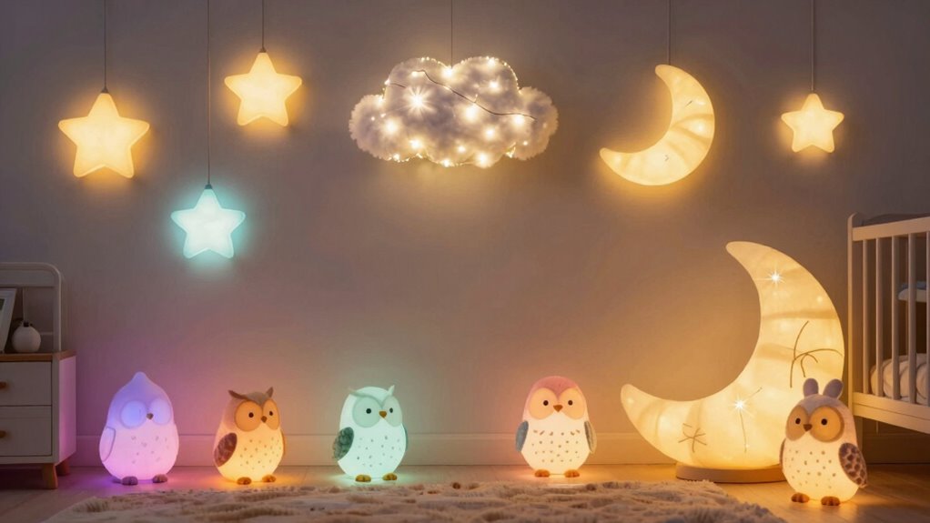 Yes, I believe night lights can serve as a gentle lighthouse guiding children through their bedtime fears. When a soft glow fills the room, it transforms shadows into friendly shapes, easing anxiety. I’ve seen how a comforting light can shift a child’s focus from fear to curiosity, making bedtime a calmer, more peaceful journey. It’s like turning on a cozy beacon that reassures and soothes.