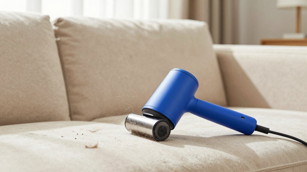 I’ve found that the rubber bristle rollers work best on delicate fabrics. They’re gentle yet effective at lifting pet hair without damaging the material. I always keep a small one handy for my sofa and curtains. The key is to use light, sweeping motions and avoid pressing too hard. This method works wonders for maintaining your furniture’s beauty while keeping pet hair at bay effortlessly.