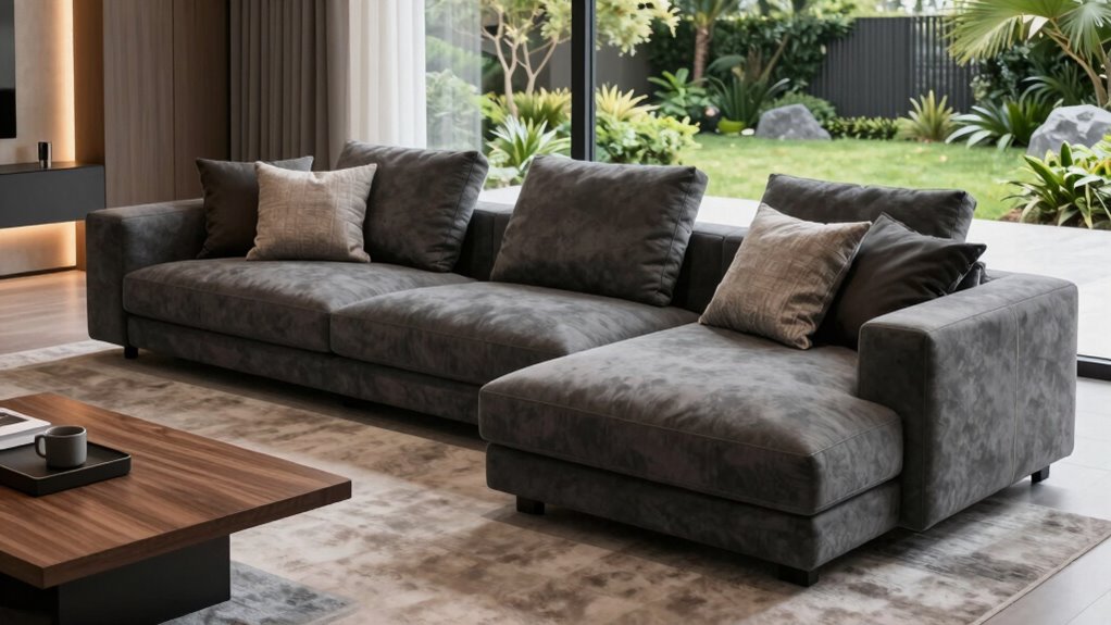 Think of a warranty as your sofa’s safety net, catching any unexpected hiccups. I’ve found that most sectional sofas come with warranties ranging from one to five years, covering defects and repairs. Return policies are usually straightforward, allowing you to test the couch at home and send it back if it doesn’t fit your vibe. Always check the seller’s specifics, so your purchase feels as secure as a cozy blanket.