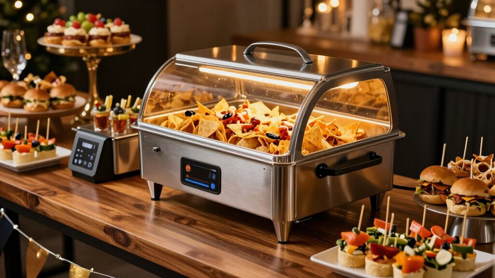 Choosing the right snack warmer means selecting quality, functionality, and convenience. Whether you prefer sleek stainless steel, adjustable temperature controls, or portable designs, there’s a perfect option for your party. Prioritize ease of use, size, and versatility to elevate your hosting game. By considering these factors carefully, you’ll guarantee your snacks stay warm, your guests stay happy, and your gatherings become unforgettable. Ultimately, the right snack warmer transforms a good party into a great one.