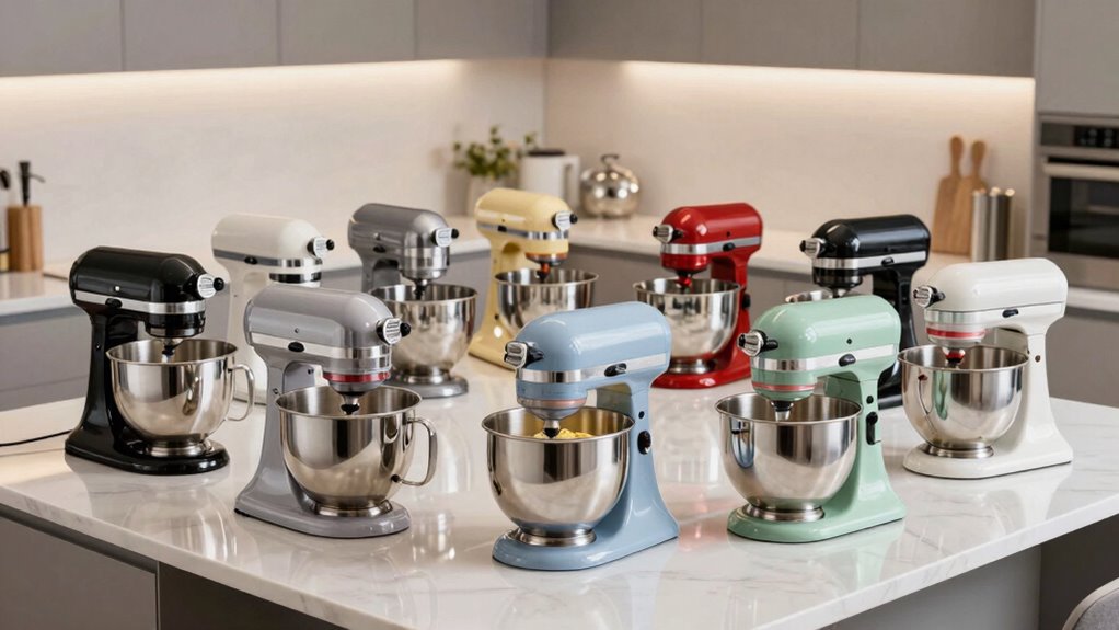 If you’re looking for the 15 best stand mixers for desserts in 2026, I’ve got you covered. These models balance power, versatility, and space-saving design, perfect for small kitchens or large baking projects. From compact 3.2QT options to larger 6-8QT heavy-duty mixers, there’s something for every need. Easy to use, clean, and reliable, these mixers help you create everything from whipped toppings to heavy dough. Keep going to discover the top picks and what makes them stand out.