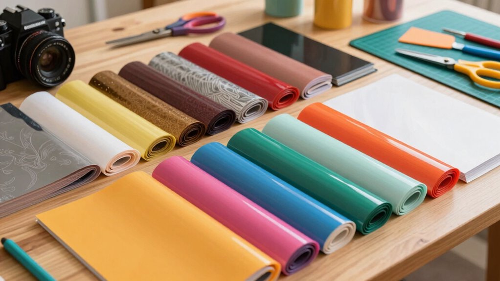 Choosing the right vinyl bundle depends heavily on your project’s specific requirements, especially regarding where and how you’ll use it. For outdoor projects, look for vinyl with high water and UV resistance to guarantee longevity. Indoor projects may require less durability, so a removable or printable vinyl could be ideal. Match the vinyl’s adhesive strength and backing type to the surface, whether glass, metal, or plastic, for better adhesion and easier application. Also, consider your cutting machine’s compatibility, checking thickness and backing for clean cuts. Finally, review the bundle size and color options to assure you have enough material for your design scope. Picking a vinyl that aligns with your project’s needs ensures better results and less frustration down the line.