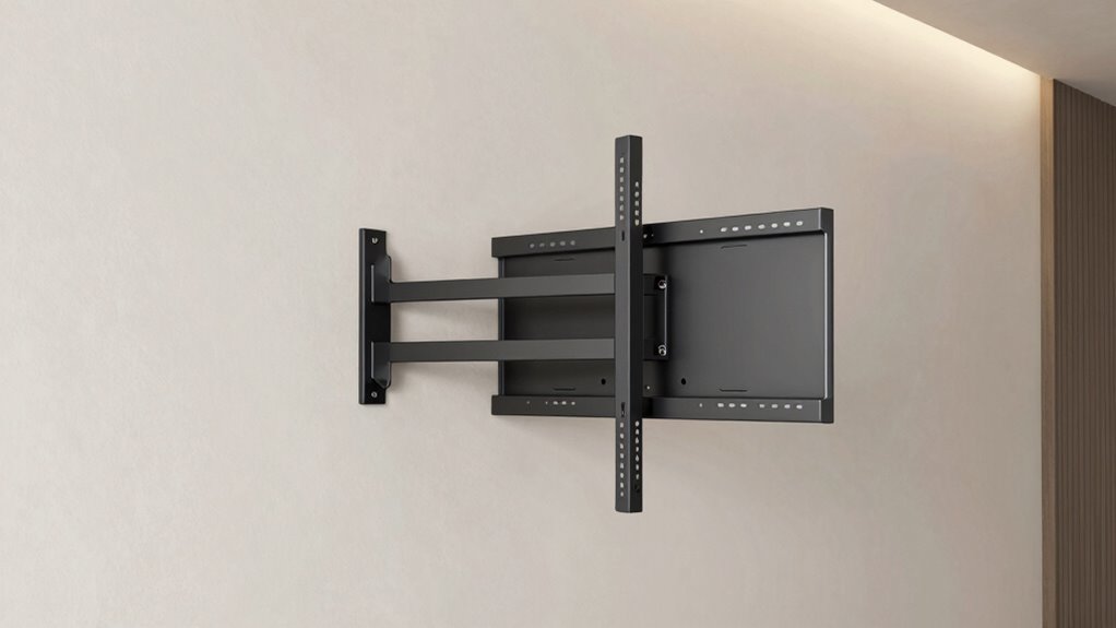 So, when you’re selecting a wall mount for your large TV, keep in mind the balance of strength and flexibility. It’s like finding the perfect dance partner—supportive yet graceful. By considering durability and motion options, you’ll create a seamless viewing experience that feels just right. Trust your instincts and choose one that complements your space, making your entertainment setup both elegant and effortless. After all, your TV deserves a gentle, steady place to shine.