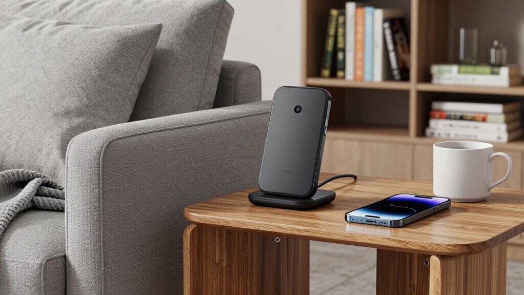 Wireless chargers blend seamlessly into modern couch side tables, almost like they’re part of the furniture’s soul. They add a sleek, minimalist touch, reducing clutter and keeping the surface clean. With slim designs and hidden cables, they enhance the aesthetic rather than detract from it. I find they make my space look more organized and futuristic, turning my table into a smart, stylish hub for everyday convenience.